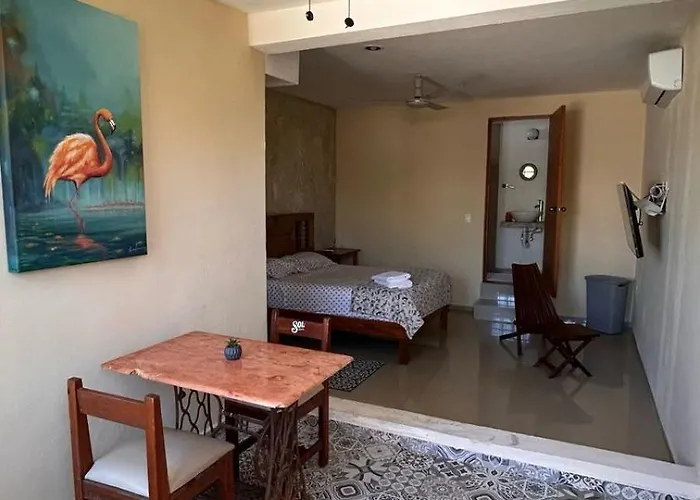 El hotel, situado en el distrito Paseo de Montejo, está a 25 minutos a pie del Museo de Antropología e Historia y a un corto paseo de lugares de compras como el Centro Internacional de Congresos de Yucatán. El Parque de Santa Lucía de Mérida se encuentra a una distancia de 2 km del Estudio Acogedor y Céntrico. Las familias que viajen a Mérida disfrutarán estando a 30 minutos a pie del Museo de los Ferrocarriles.